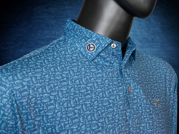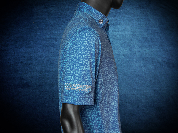Polo Shirt Scotty Dog Tour Tech Stretch Fabric Bourbon Street Print Lake Blue